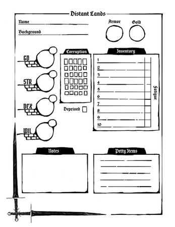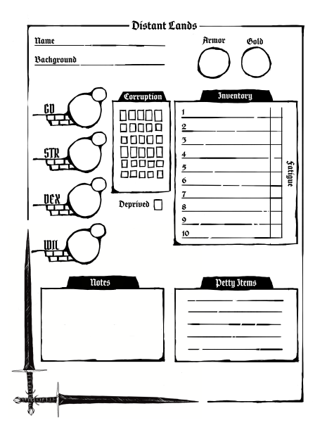 Distant Lands is a 44 page ttrpg rulebook for running sword & sorcery or dark fantasy games where magic is rare, and dangerous, and the threat of corruption always looms.